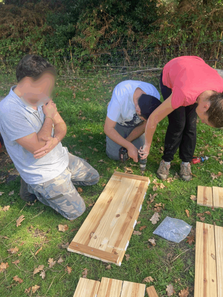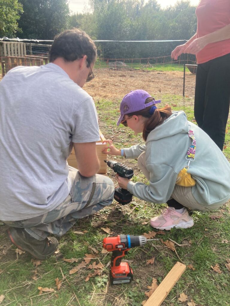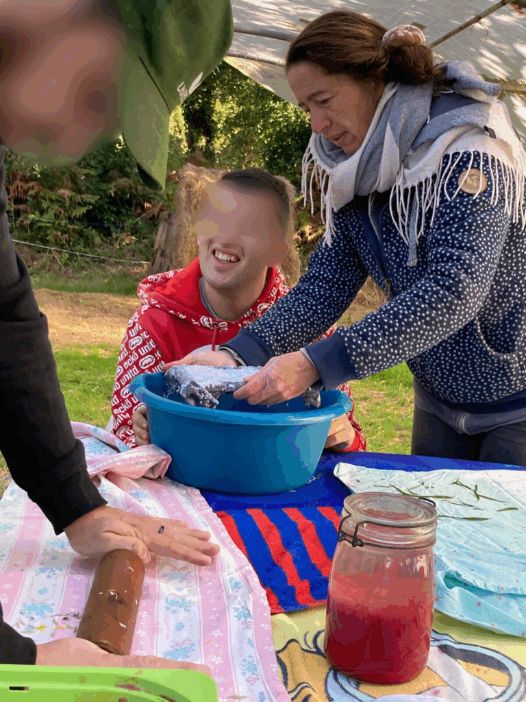 Nous proposons des « chantiers collectifs » centrés sur des activités variées (jardinage, soin des animaux, cueillette et cuisine, bricolage simple…) en lien avec notre fil rouge qui est de tendre vers l’autonomie et de créer un lieu collectif d’accueil et de découverte du vivant où chacun/e se sente à sa place.